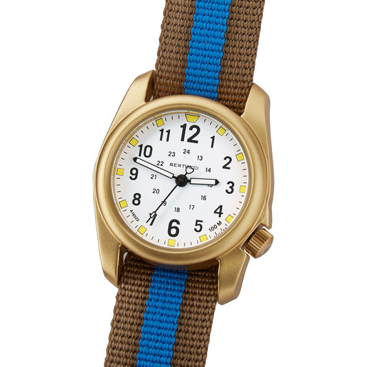 Bertucci A-2A Golden Field™ - White dial, Coyote w/ Blue Pro-Stripe™ Nylon Band